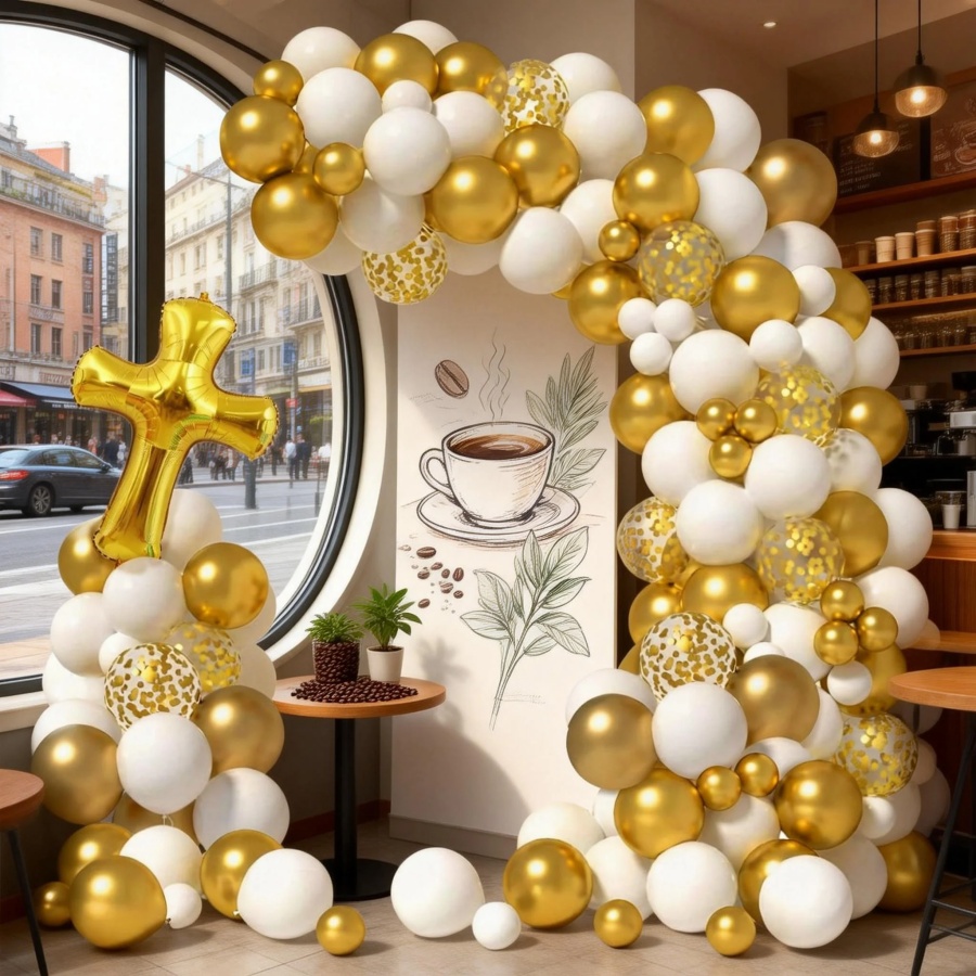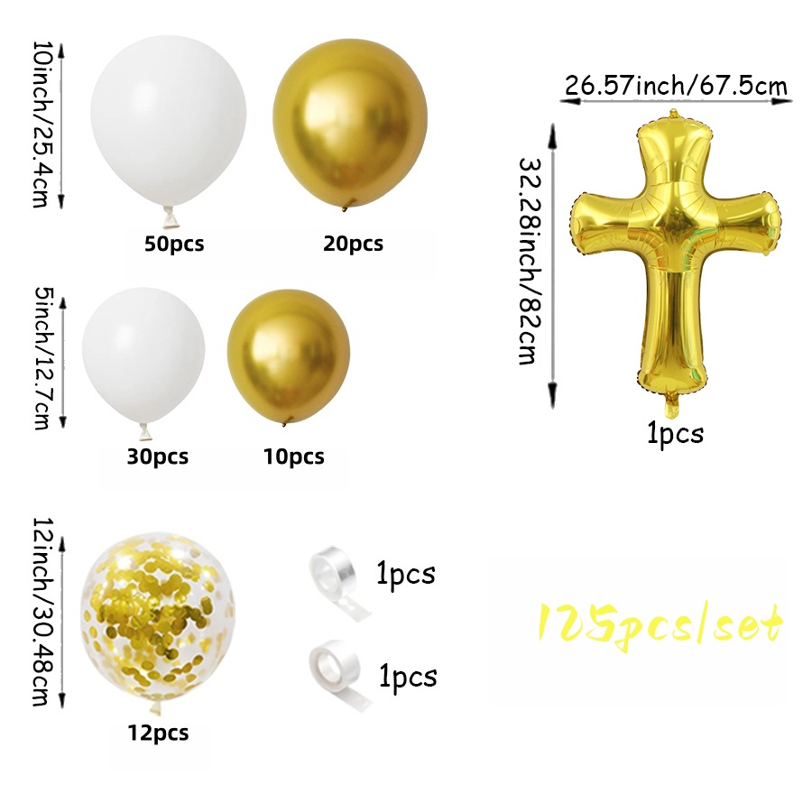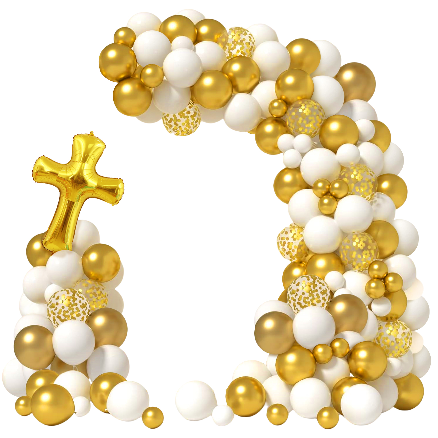Arco De Globos Blanco Dorado De Primera Comunicación Kit 125 Piezas – Decoración Religiosa Cruzada Para Bautizo Fiesta Decumpleaños Niños Niñas Tema Celecorpiñoción