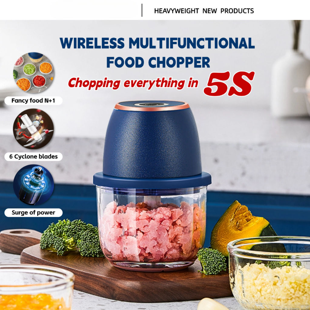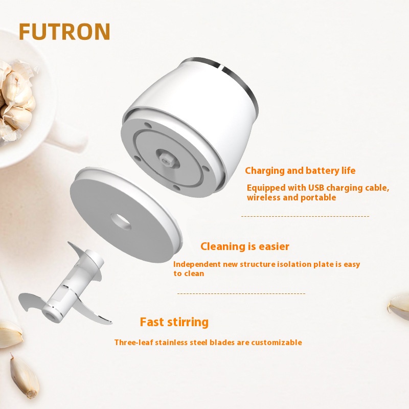 Potente picadora y procesadora de alimentos portátil eléctrica de 350ML Mini USB inalámbrica de acero inoxidable 304 cortadora de ajo de mano