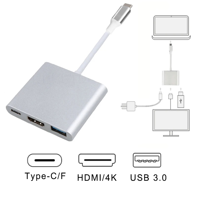 Concentrador USB Tipo C a HDMI compatible Cable 4K Convertidor Adaptador Tipo C a HD-MI/USB 3.0/Tipo-C para PC Laptop MacBook