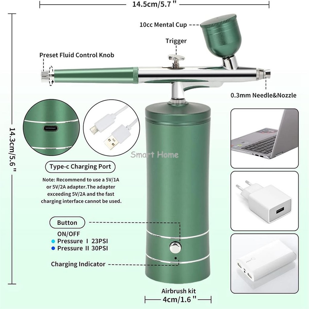 Juego De Aerógrafo Actualizado Con Compresor De Aire Automático Inalámbrico Recargable De Mano Para Maquillaje Fácil De Instalar Usar A