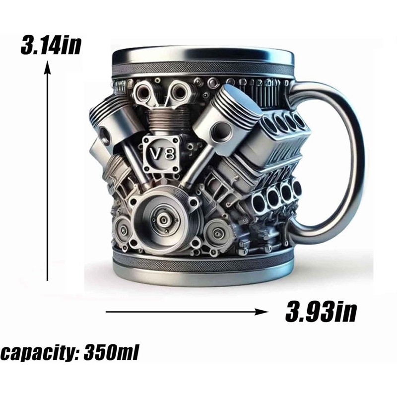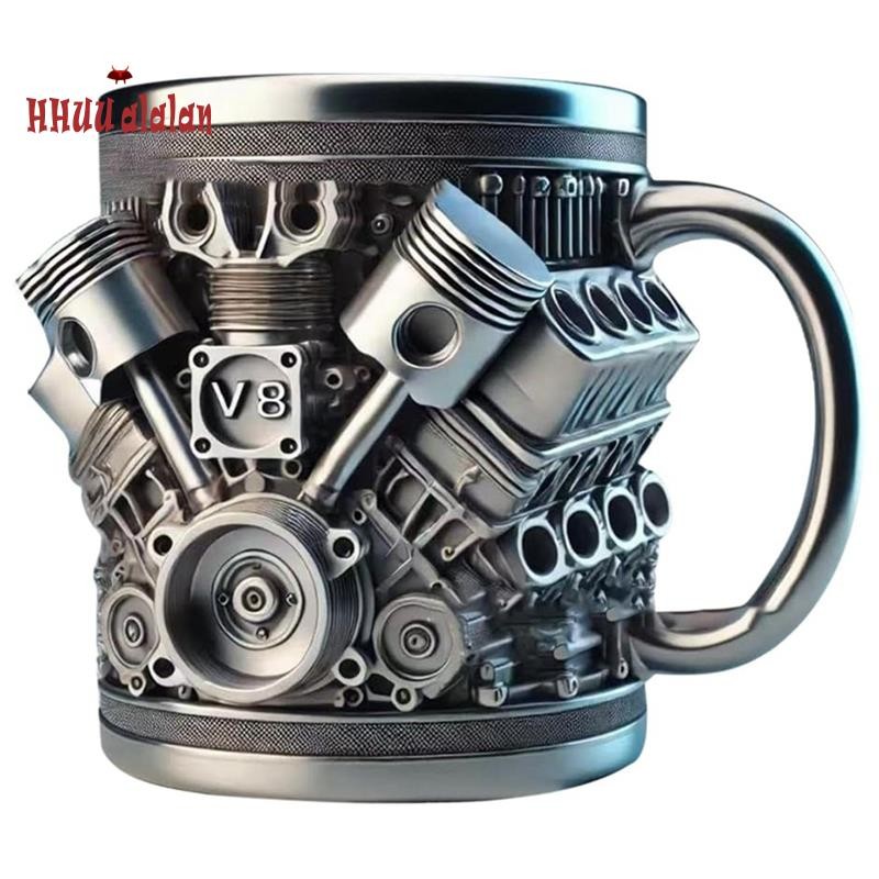 V8 Motores Taza De Café De Acero Inoxidable Del Coche Con Mango Aislado Para Los Amantes De Coches