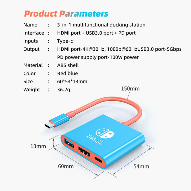 Estación De Acoplamiento Portátil 3 En 1 Para Nintendo Switch Hub Tipo-C Con HDMI Y USB 3.0 Perfecto Para Viajes Y Juegos