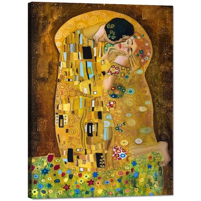 El Beso Pintura Famosa Reproducción Obras De Arte Por Gustav Klimt Lienzo Giclee Impresiones Símbolo Austriaco Cuadro De Pintor Para El Hogar Oficina Decoración WH